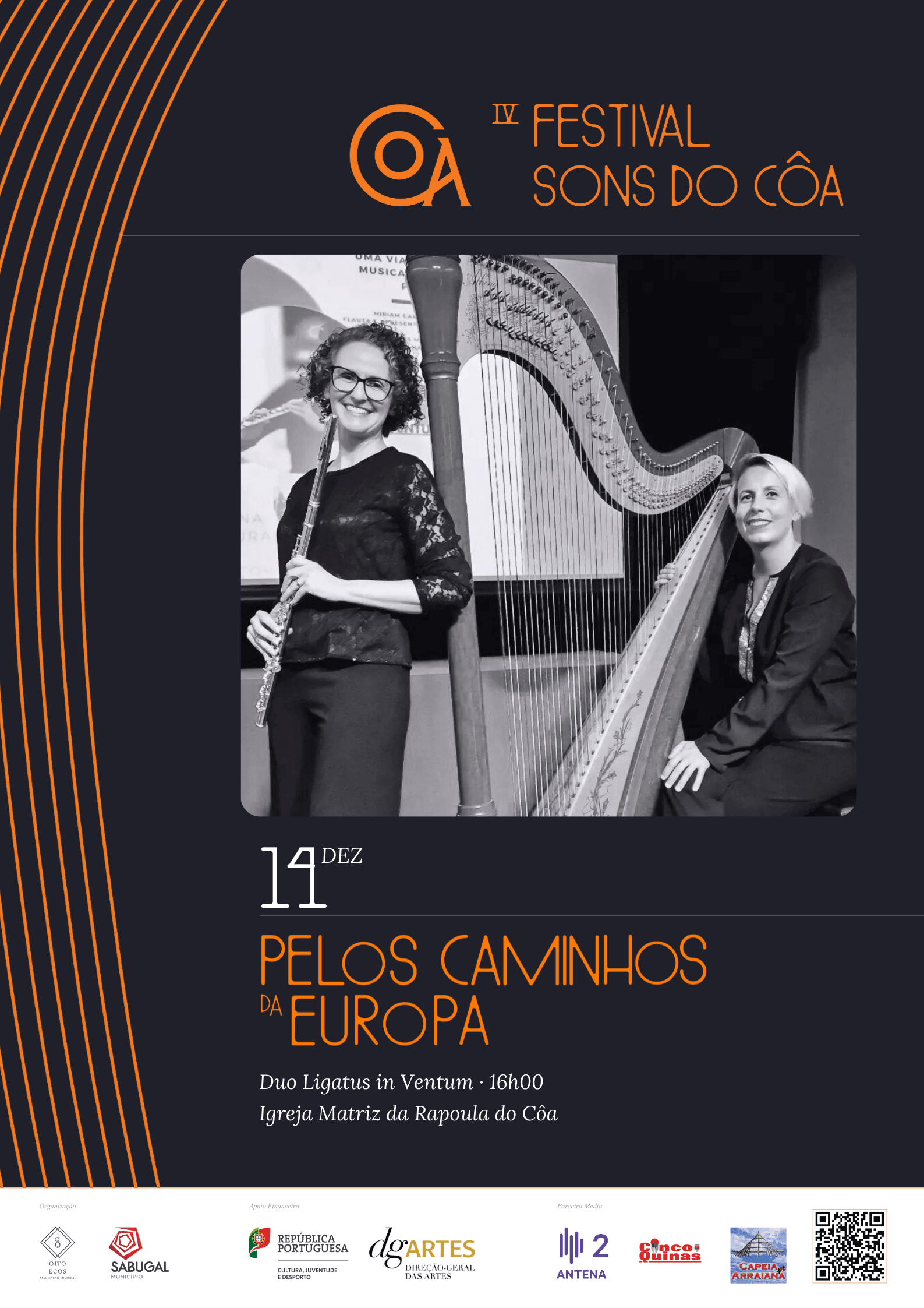 No âmbito da 4.ª edição do Festival ‘Sons do Côa’, o recital ‘Pelos Caminhos da Europa’, pelo Duo Ligatus in Ventum, previsto para o dia 19 de outubro e que foi cancelado por motivo de força maior, vai ter lugar na Igreja Matriz da Rapoula do Côa, no dia 14 de dezembro.
