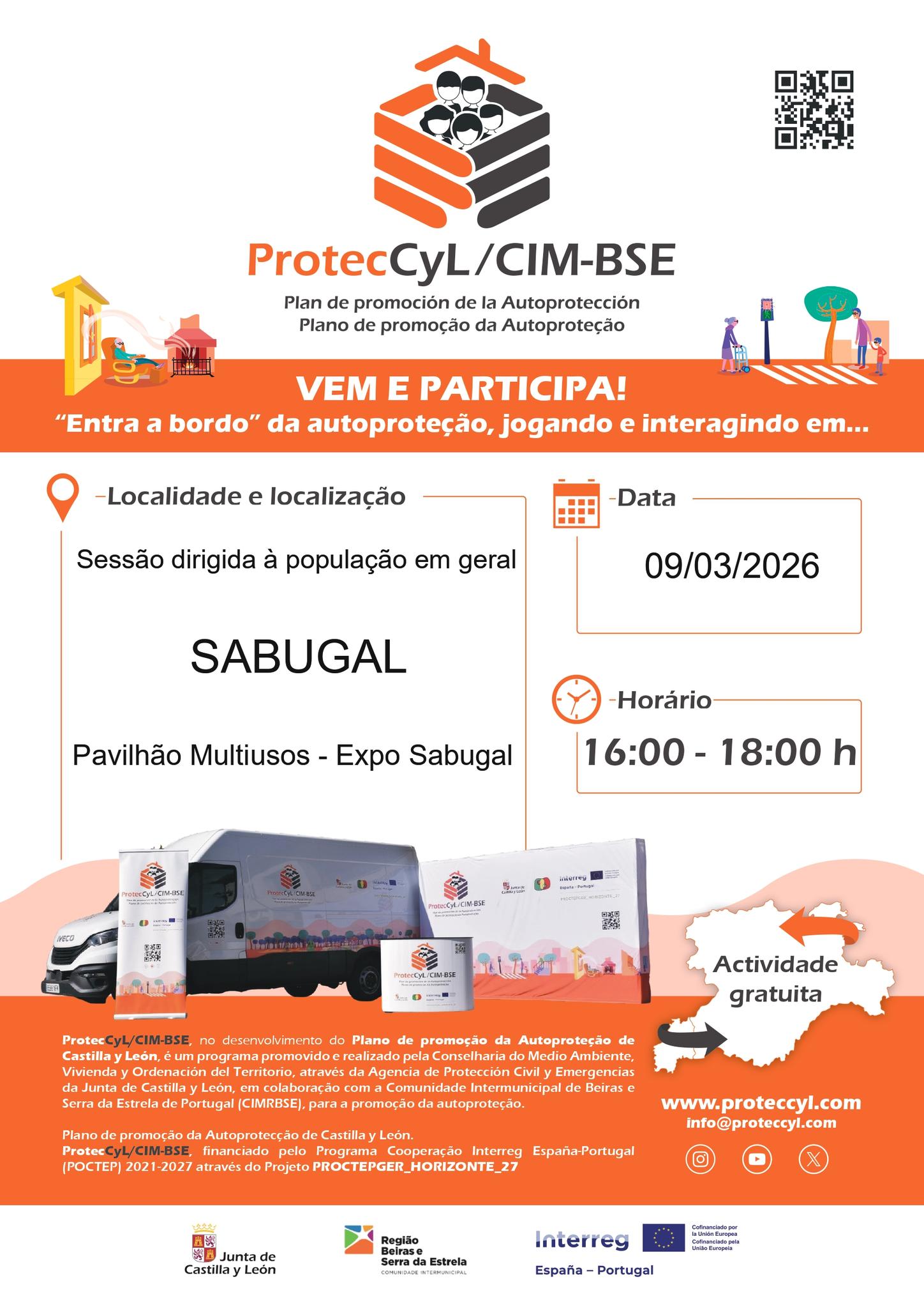 Na próxima segunda-feira, dia 9 de março, vão decorrer sessões do Plano de Promoção da Autoproteção ProtecCyL/CIMRBSE, no Pavilhão Multiusos ExpoSabugal, uma iniciativa da CIM Região Beiras e Serra da Estrela, em parceria com a Junta de Castilla y León.