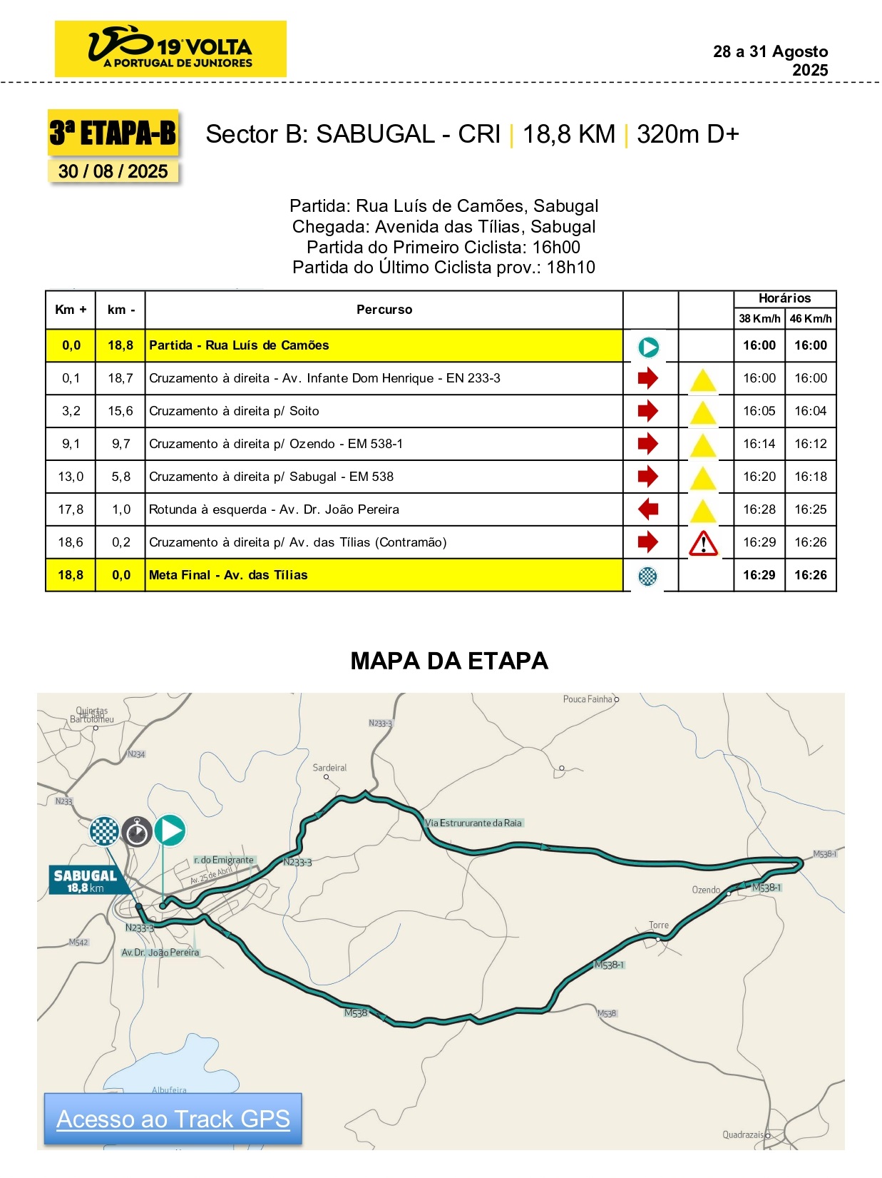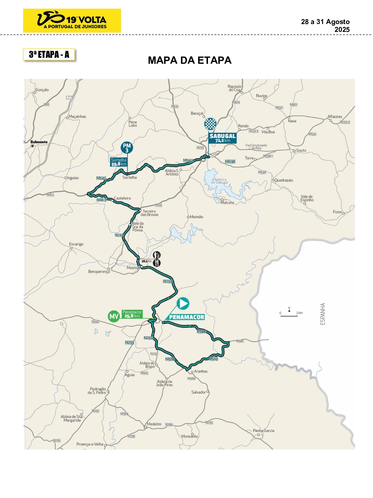No dia 30 de agosto, sábado, o concelho do Sabugal recebe a 19.ª Volta a Portugal de Juniores através de uma jornada dupla da 3.ª etapa.