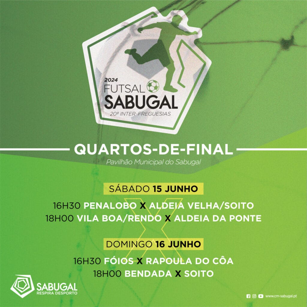 Nos dias 15 e 16 de junho, no Pavilhão Municipal do Sabugal, jogam-se os quartos de final do ‘Torneio de Futsal Inter-Freguesias do Concelho do Sabugal’.