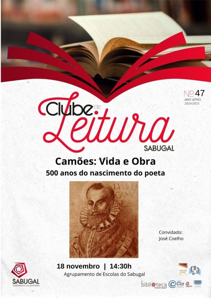 Para assinalar os 500 anos do nascimento de Luís Vaz de Camões, uma das maiores figuras da literatura lusófona e um dos grandes poetas da tradição ocidental, José Coelho, Professor-Bibliotecário, profere uma palestra sobre a vida e obra de Camões, sustentada na troca de ideias e conhecimentos com os membros do Clube de Leitura e os estudantes.