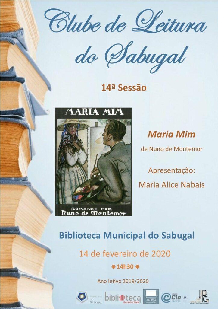 Neste encontro, a participante Maria Alice Nabais homenageia um autor local, natural de Quadrazais: Nuno de Montemor (1881-1964), pseudónimo de Joaquim Augusto Álvares de Almeida, que para além de escritor, também foi ordenado Sacerdote, tendo ficado conhecido como o “Sr. Padre Capelão” pela sua dedicação à cidade da Guarda. Dos vários livros de poesia e romances que escreveu, Maria Mim é seguramente uma das suas principais e mais divulgadas produções literárias. No dia em que se celebra o amor, é precisamente este romance, que retrata as aventuras amorosas de Maria Mim e do alferes Júlio Marinho, nos meandros do contrabando da raia espanhola, em meados do século XX, que irá estar em destaque nesta sessão do Clube de Leitura do Sabugal.