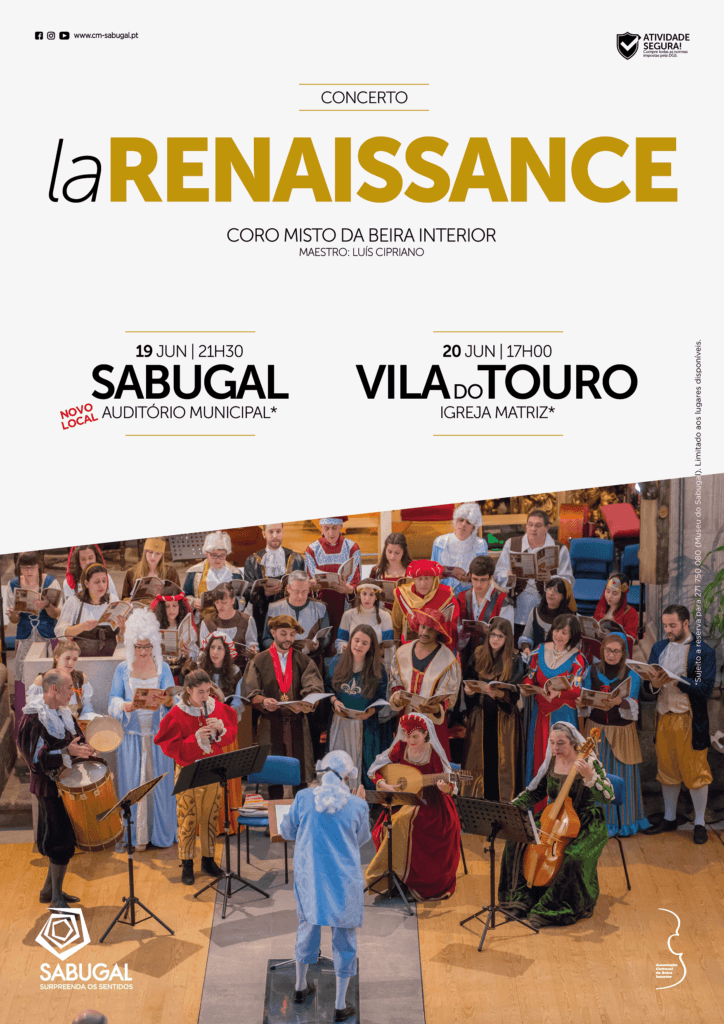 O Auditório Municipal do Sabugal, no dia 19 de junho pelas 21h30, e a Igreja Matriz de Vila do Touro, no dia 20 de junho pelas 17h00, vão acolher o concerto ‘La Renaissance – 500 anos da morte de D. Manuel I’, apresentado pelo Coro Misto da Beira interior.