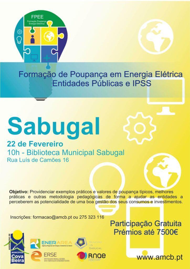 No dia 22 de fevereiro, na Biblioteca Municipal, vai realizar-se uma formação gratuita em poupança de energia elétrica, direcionada para entidades públicas e Instituições Particulares de Solidariedade Social (IPSS’s), uma organização da Associação de Municípios da Cova da Beira (AMCB), com o apoio do Município do Sabugal.