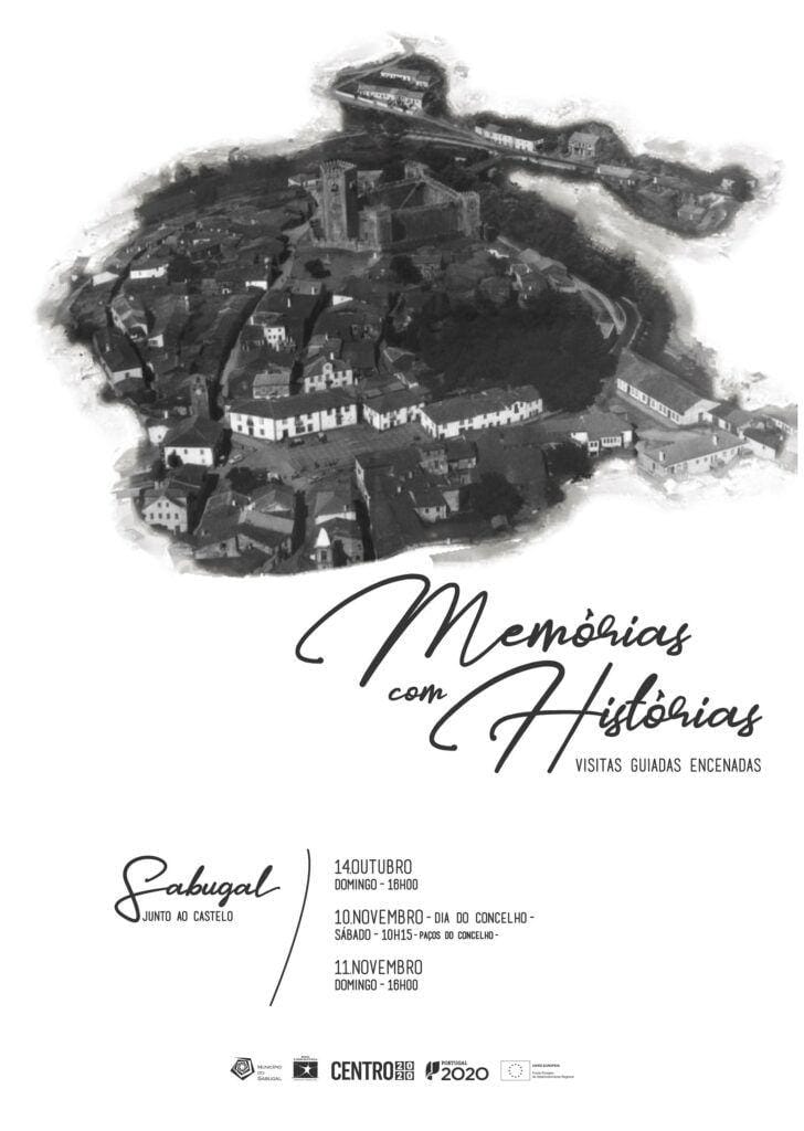 Esta ação, designada ‘Memórias com Histórias’, terá uma componente de reinterpretação de acontecimentos diversos relacionados com a história, monumentos e personagens históricas do Sabugal. Tem como base o livro “Terras de Riba Côa – Memórias sobre o Concelho do Sabugal” de Joaquim Manuel Correia, sendo que o próprio é a personagem anfitriã destas visitas, levando o público a fazer um itinerário contemplativo e interativo pelo centro histórico do Sabugal.