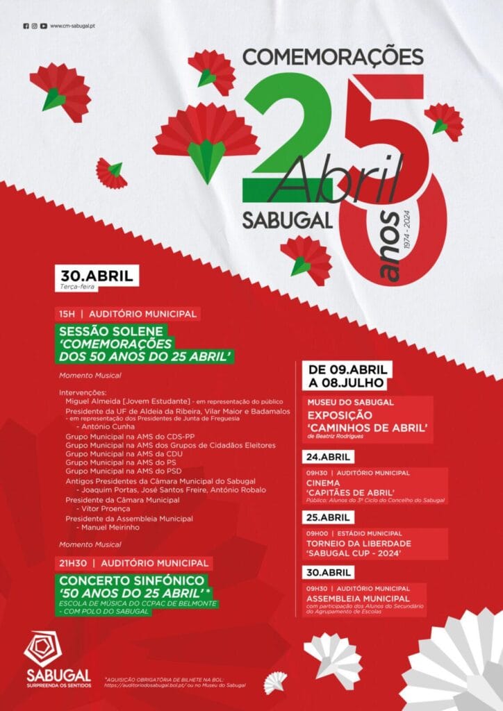 O concerto evocativo dos 50 anos do 25 de Abril está agendado para as 21h30, no Auditório Municipal, com a Escola de Música Pedro Álvares Cabral – Belmonte/Polo do Ensino Articulado do Sabugal. Este será um concerto sinfónico coral com a participação de uma banda de música ligeira. Os alunos e professores vão interpretar alguns temas do cantautor português José Afonso, estando, também, incluídos alguns momentos de declamação de poemas do mesmo autor.