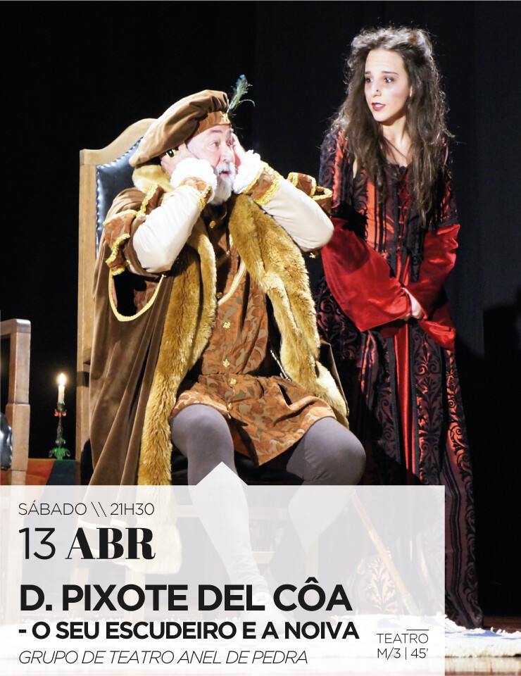 No dia 13 de abril, sábado, às 21h30, o Grupo de Teatro Anel de Pedra apresenta a peça ‘D. Pixote Del Côa, o seu Escudeiro e a Noiva’, no Auditório Municipal do Sabugal.