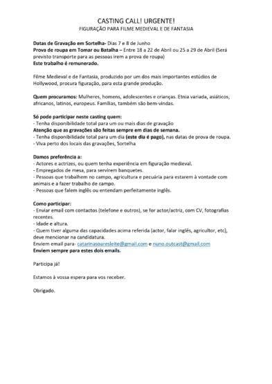 PROCURAM-SE FIGURANTES PARA FILME MEDIEVAL E DE FANTASIA