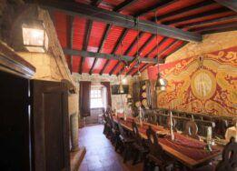 1 kitchenette, 1 arrecadação, 5 wc´s e 6 quartos dos quais: 4 de casal (2 destes são suites, uma com lareira), 1 single, 1 com beliches (para 4 pessoas). A casa tem 5 portas de entrada de rua. Pode ser usada na sua totalidade, ou dividida (com entradas/saídas autónomas).