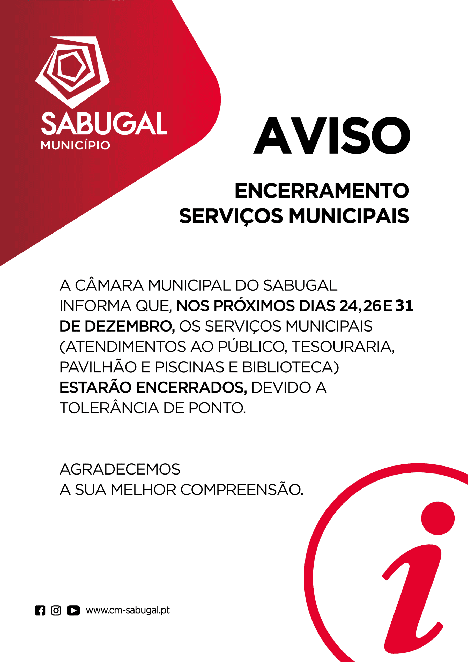 ⚠️Aviso | Encerramento de Serviços Municipais