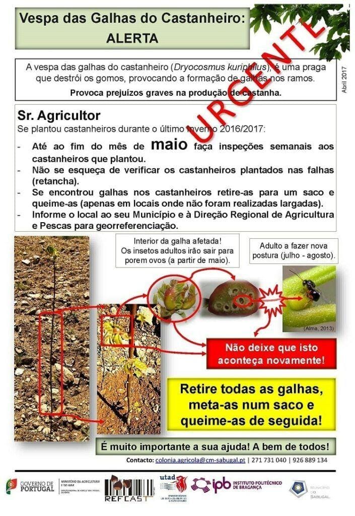 Tendo sido sinalizada a presença da vespa das galhas do castanheiro (Dryocosmus kuriphilus) no concelho do Sabugal, nomeadamente na União de Freguesias do Sabugal e Aldeia de Santo António, e dado que a praga representa uma ameaça para os soutos e castinçais da região, a Direção Regional de Agricultura e Pescas do Centro, em parceria com a RefCast- Associação Portuguesa da Castanha e em colaboração com a Câmara Municipal do Sabugal, realizou uma largada no dia 10 de maio.