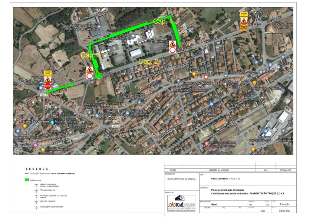 A Câmara Municipal do Sabugal informa que, no âmbito da obra ‘Circular Interna de Mobilidade Suave e Inclusiva do Sabugal – Fase 1’, foi revisto o plano de sinalização, de acordo com a planta de sinalização temporária, considerando os trabalhos de pavimentação dos troços 2, 3 e 4.