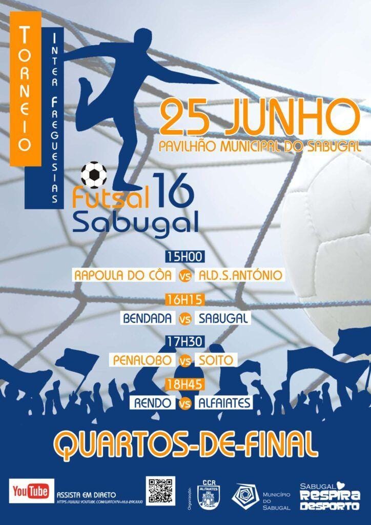 No próximo sábado, dia 25 de junho, vai ter lugar, no Pavilhão Municipal, os quartos-de-final do Torneio de Futsal Inter-Freguesias do Concelho do Sabugal 2016.